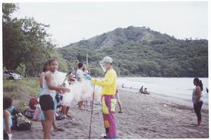 film photograph of a clown in playas del coco, costa rica selling cotton candy (2021)
